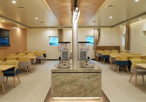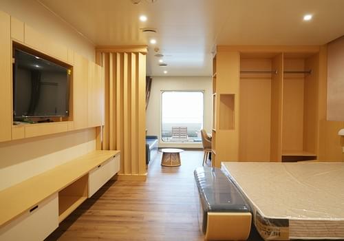 · Areas:top deck lounge, 6 deluxe suites, 12 standard rooms, 12 double rooms , 8 twin rooms , 10 crew room, 2 private rooms, Self-service restaurants, Lounge Bar, reception, meeting room, KTV, SHOP, recreation room, changing room, public toilet